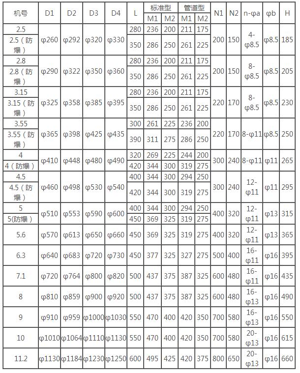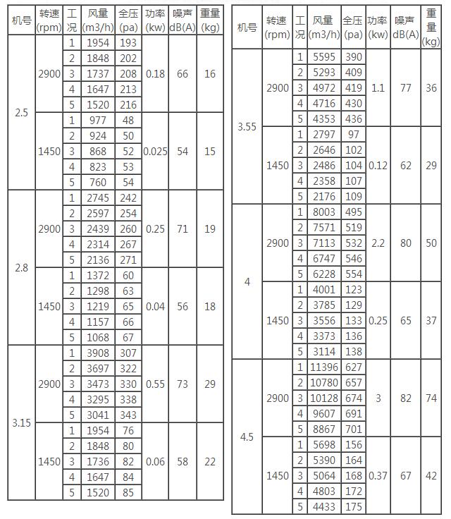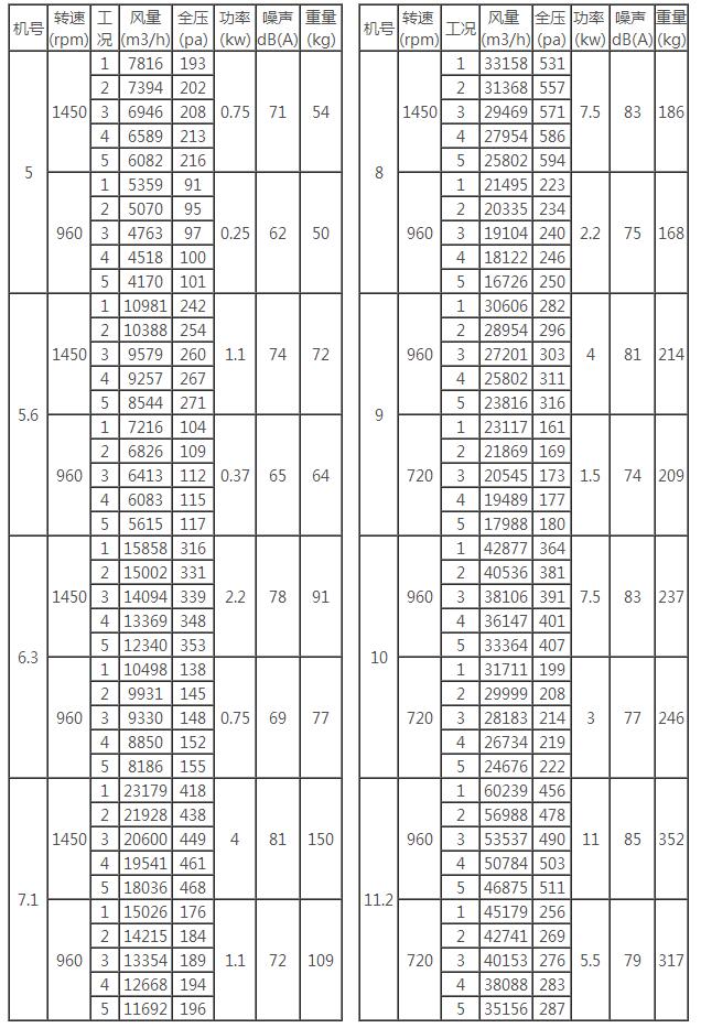 二、CDZ型低噪聲軸流風機性能參數表