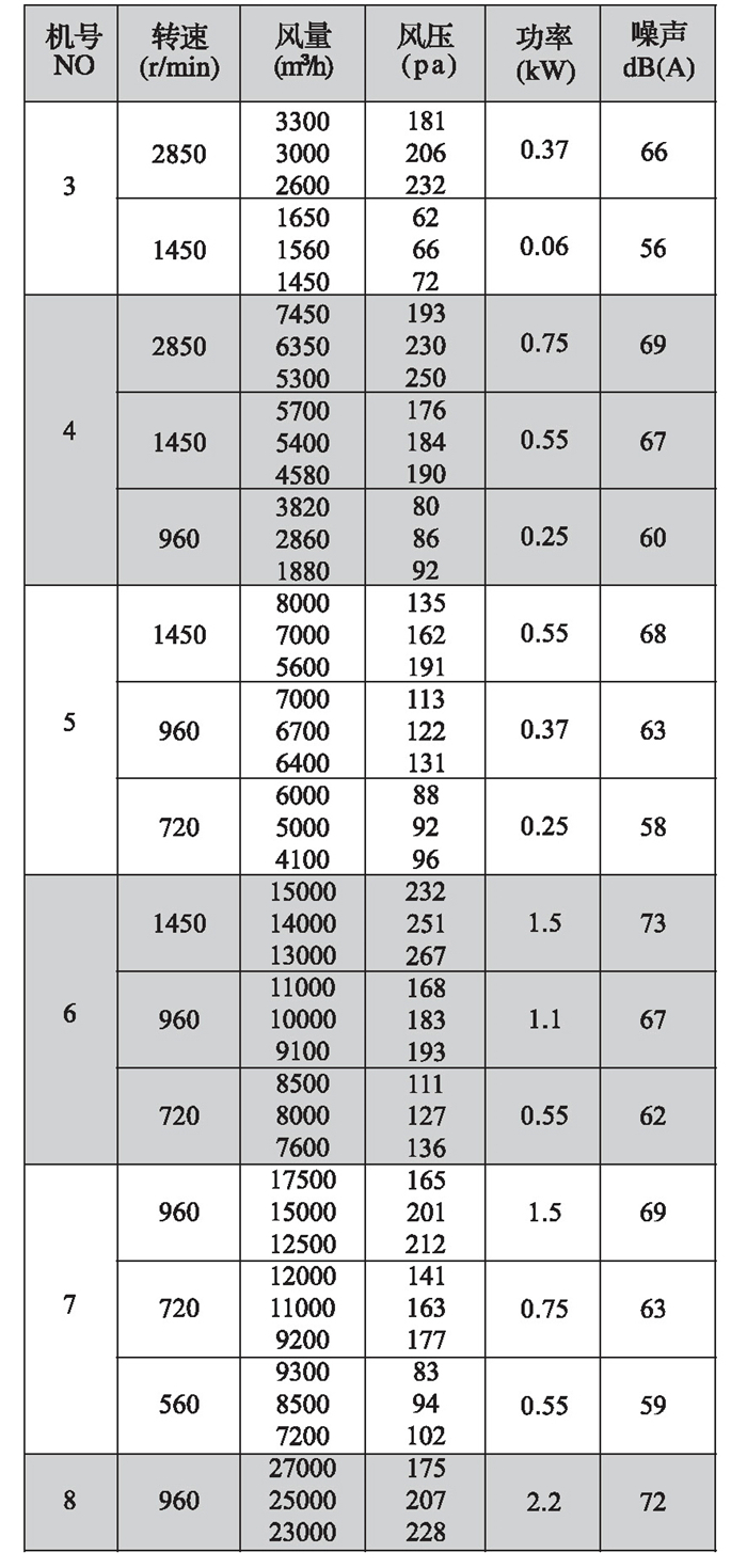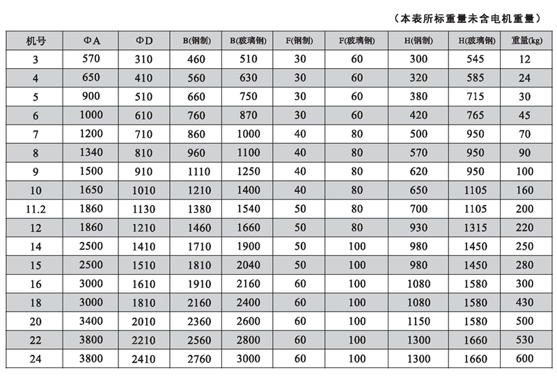 DWT-I型(軸流式)續表