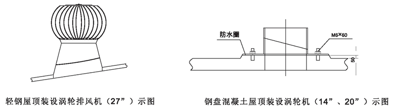 DWT-IV型(無(wú)電機(jī))屋頂渦輪排風(fēng)機(jī)屋面安裝示圖說(shuō)明