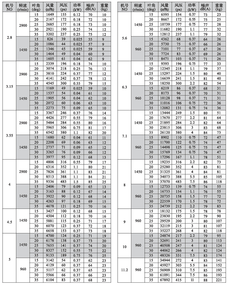 三、T35型風機性能參數(shù)表